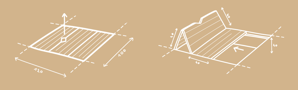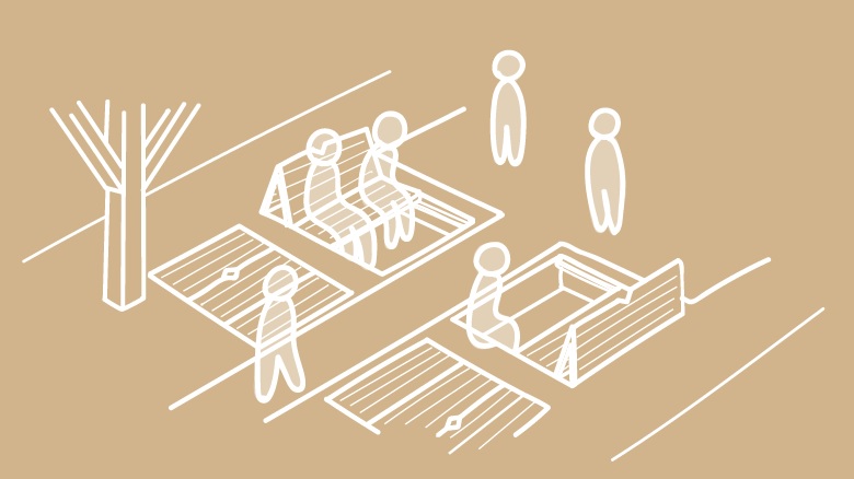 S pomočjo hidravličnega mehanizma so po-klopi enostavne za odpiranje in zapiranje. Kadar niso v uporabi, avtor predlaga rabo za shranjevanje – pod loputo v tleh je namreč veliko shranjevalnega prostora.