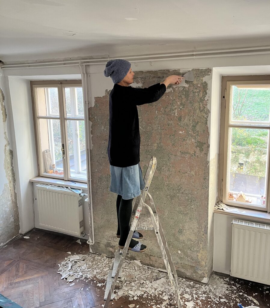 Nataša: Kontekst je pri vsem skupaj bistven, zelo pomembno je namreč, v kateri oz. kakšen prostor vstopaš, kaj je njegova vsebina, ali gre za prenovo ali novogradnjo itd. Pri premisleku o zasnovi izhajaš tudi iz vprašanja, kaj ti izbrani prostor oz. lokacija ponuja v materialnem smislu. V ateljeju se, kolikor se le da, držimo načel trajnosti, četudi je ta beseda v sodobnih časih precej zlorabljena. Uporablja se namreč kot pomoč pri argumentaciji vse sodobne arhitekture, tudi tam, kjer je le majhen del objekta zasnovan trajnostno, saj se takšna oznaka v promocijskem smislu lahko dobro obnese, ali pa je tudi bližnjica za prejem zelene luči za gradnjo. Mi pa se v projekte prenove podajamo z idejami odkrivanja plasti — če želite, lahko tudi na način plastenja čebule — v težnji, da bi ohranili čim več elementov izvirne strukture. Z betonom in jeklom vstopaš v staro stavbo res samo tam, kjer je to konstrukcijsko potrebno, kjer moraš utrditi neko starejšo strukturo, na primer iz kamna, opeke ali lesa. S plastenjem odkrivaš govorico prostora in objekta, zaradi česar lahko k prenovi pristopaš raziskovalno in to tako racionalno, kot tudi intuitivno. Sem zelo vizualen človek, zato si prostor projekta, njegovo materialnost in barve, najprej predstavljam v glavi. S Sašom zato lahko zelo dobro sodelujeva, saj se v pristopih dopolnjujeva, medtem ko je on najprej v konceptih, proporcih in kompozicijah, lahko jaz skozi zgodbo predstavim določene taktilne, materialne in teksturne aspekte zasnove, ki jih zna on predstaviti tudi v skici. To ne pomeni, da sama ne znam skicirati (smeh), risbo cenim in prakticiram že od nekdaj; najino skupno ustvarjanje se skozi sorodnosti in razlike postopoma izlušči v celoto.