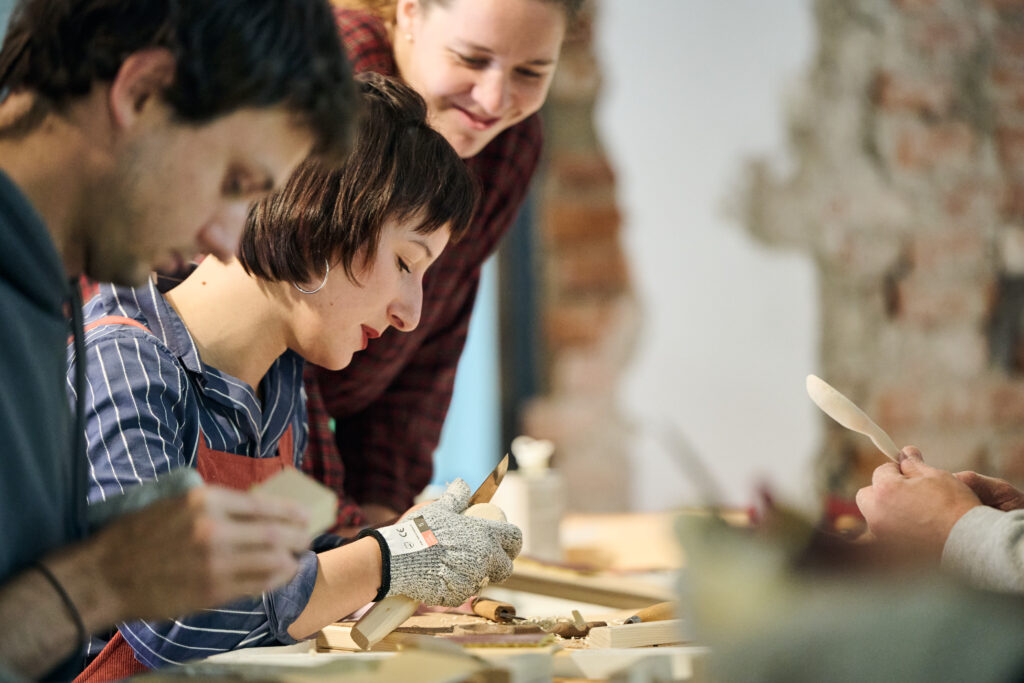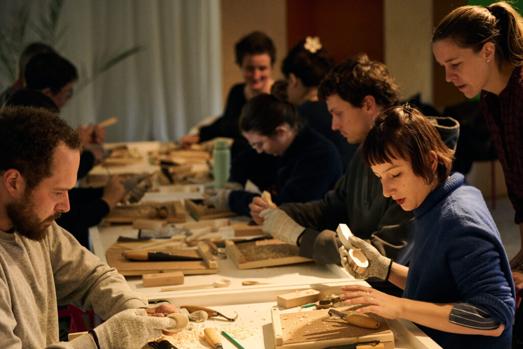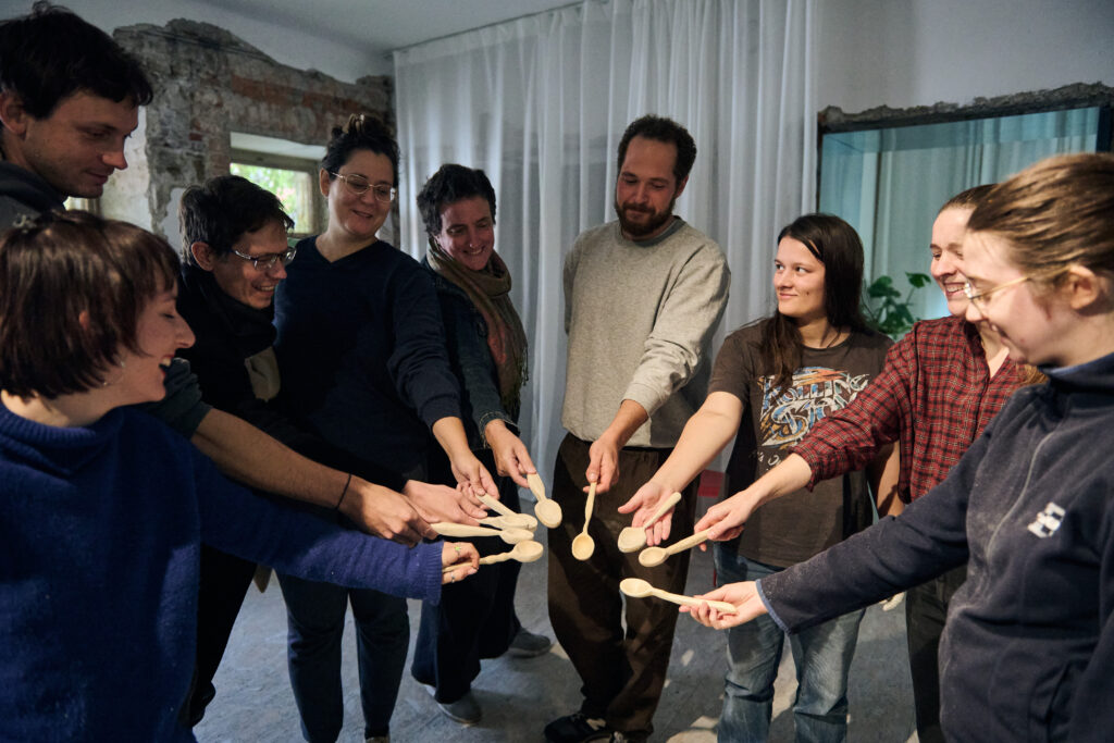 Prvi dan, četrtek, smo začeli z delavnico rezljanja. Pod skrbnim vodstvom Nike Ajdovec (Tishlerka) so udeleženci izdelali vsak svojo leseno žlico, jo pobrusili in naoljili. Projektni prostor v MAO je utripal od smeha, ustvarjalne vročice in navdušenega rezljanja.