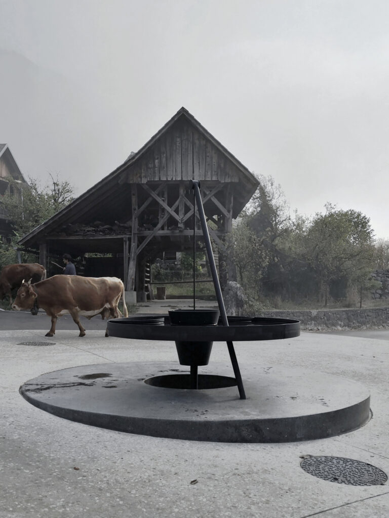 Novo tlakovanje okoli vodnjaka vdelalnih odtisov kravjih kopit je igriv poklon hollywoodskemu pločniku slavnih. Vendar pa tukaj zvezde niso igralci, temveč krave, ki oblikujejo pokrajino in dnevno prehajajo skozi vas. Humor in spoštovanje se prepletata s tradicijo in na ta način usidrata projekt v vaški vsakdan.