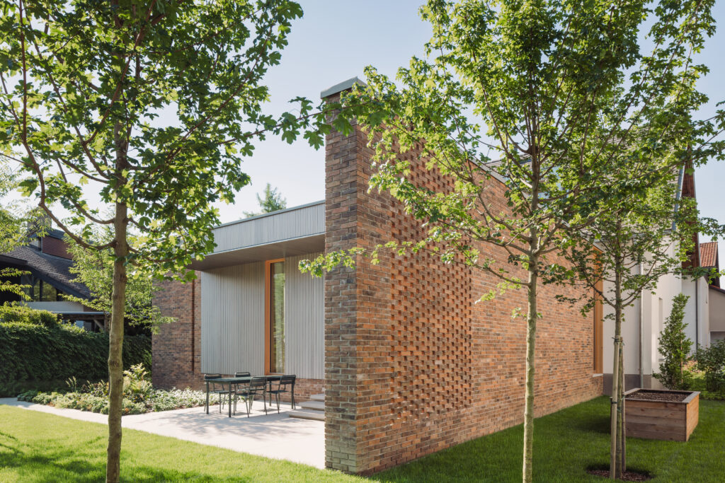 Hiša na robu mesta, z dovolj prostora in velikim vrtom, da se na njem igrajo otroci, sadi cvetje in pozimi pticam nastavlja krmilnice – to so sanje, ki so bile v začetku dolgega dvajsetega stoletja enako žive kot danes. Hiša v Rožni dolini je skozi desetletja in generacije spreminjala obliko, se širila in dobivala prizidke, vsi ti dodatki pa so jo nazadnje odrezali od njenega največjega aduta: vrta. Ko so k projektu pristopili arhitekti iz ARP studia, je bila torej ena izmed njihovih prvih potez ponovna vzpostavitev pretočnosti komunikacij med hišo in njenim zelenim zavetiščem. Vse kasnejše strukture, ki so bile hiši dodane na severni strani, so odstranili, rešitev za povezavo notranjosti in zunanjosti pa našli v novem opečnem prizidku, ki z zadržano jasnostjo v hišo vodi svetlobo, pogled pa na vrt. Taktilna obdelava opečne mreže je tista, ki stavbo nedvoumno umešča v čas in prostor: v Ljubljano, v čas po Ravnikarju.
